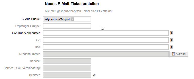 Unterhalb der Queue-Auswahl können Sie die gewünschte Empfängerliste auswählen. Anschließend klicken Sie auf das gewünschte Feld, an das die E-Mails oder Kundenbenutzer eingefügt werden sollen (An, Cc oder Bcc).