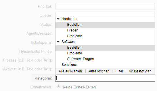 Über das Kunden-Frontend haben ihre Kunden die Möglichkeit selber Tickets zu erstellen. Standardmäßig muss hier die Queue ausgewählt werden, in der das Ticket liegen soll. Da ihr interner Ablauf dem Kunden nicht unbedingt klar ist, ist es sinnvoll ihm eine übersichtlichere Einteilung zur Queue-Zuordnung anzubieten.